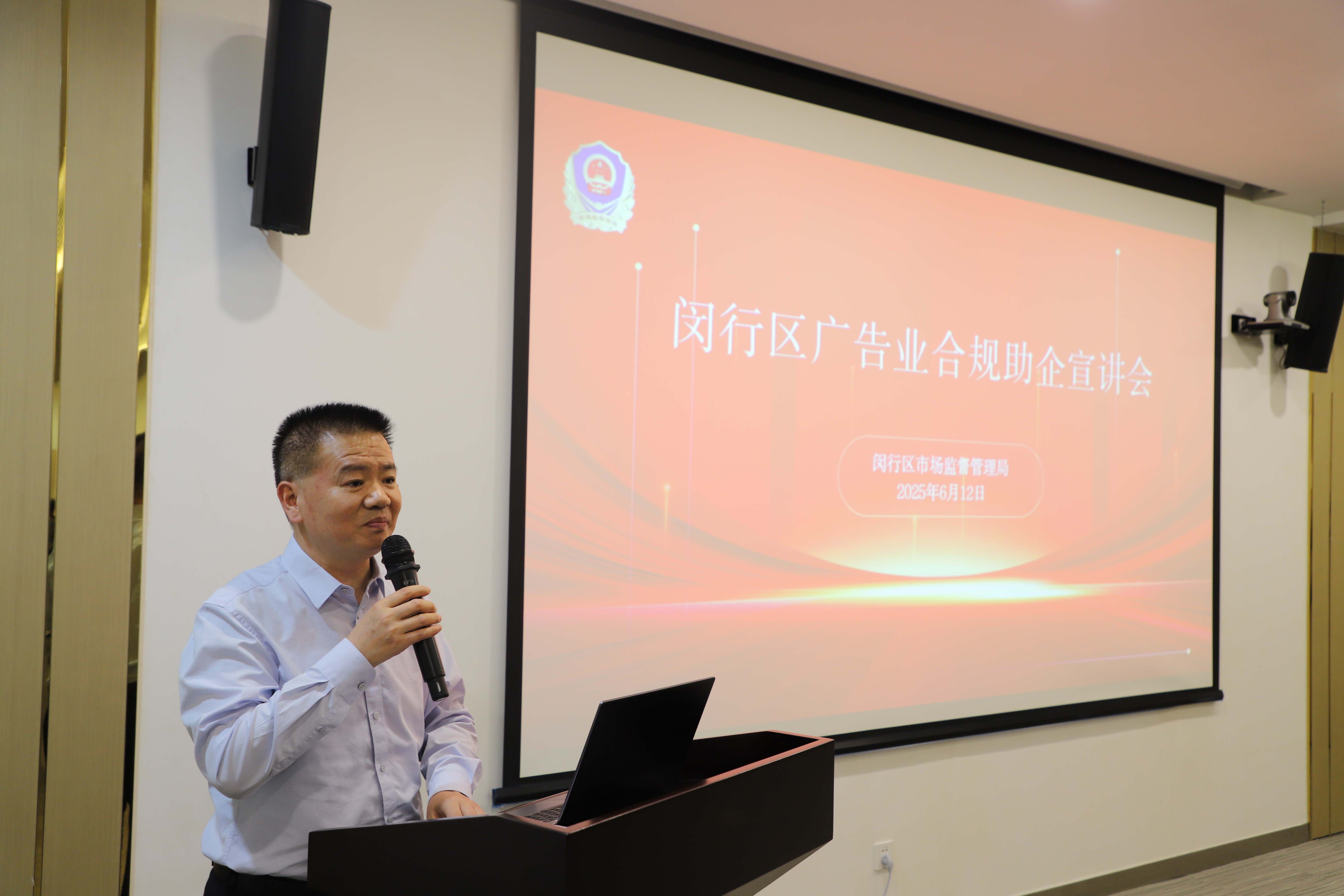 2025年6月12日,闵行区市场监督管理局在中国(上海)网络视听产业基地内举办了“闵行区广告业合规助企宣讲会暨广企对接会”活动。区市场监管局副局长李黎军、网络视听基地公司总经理陈鼎出席,市经济信息中心、市广告产业协会的代表及区内有一定规模与影响力的三十多家广告产业企业代表参加活动,其中落户在网络视听产业基地的有:途虎养车、哈啰出行、刊明广告、宏思广告、喜贤文化等。