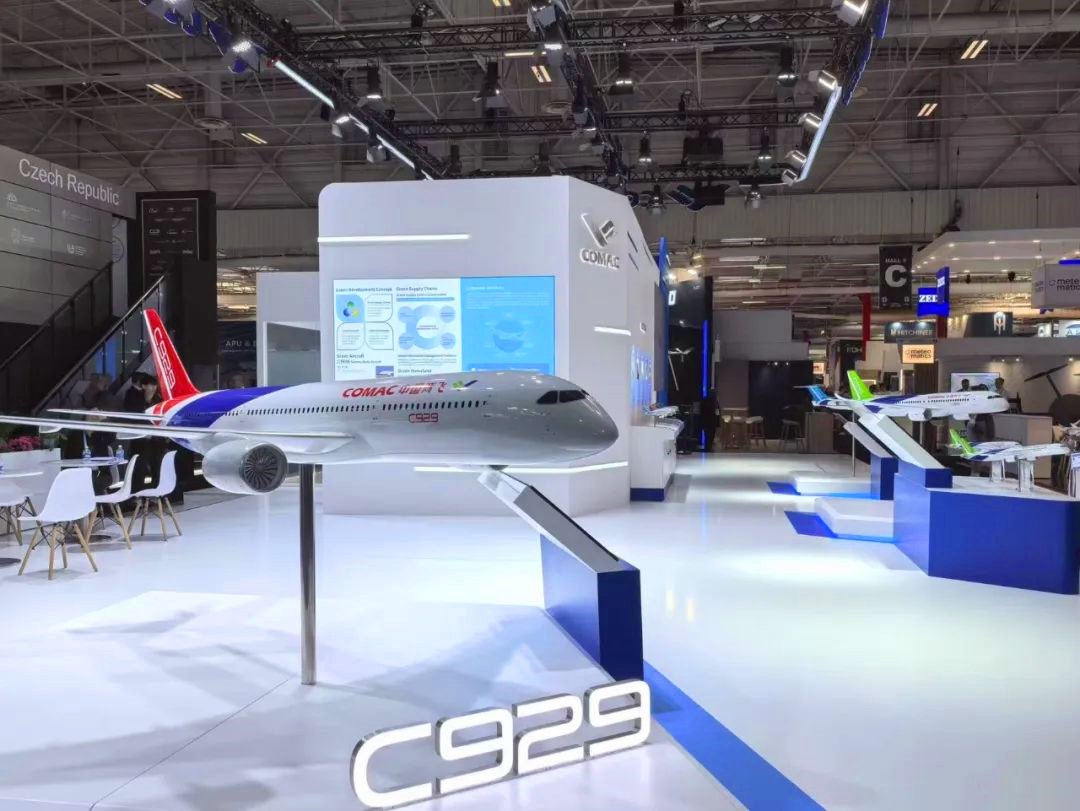 2025年6月16日,第55届巴黎国际航空航天展览会在法国巴黎布尔歇展览中心正式开幕。中国商用飞机有限责任公司向公众展出了c909、c919和c929基本型飞机模型,以及c909和c919衍生型飞机模型。航展期间,中国商飞公司与赛峰和克瑞等签署了c929项目合作谅解备忘录。