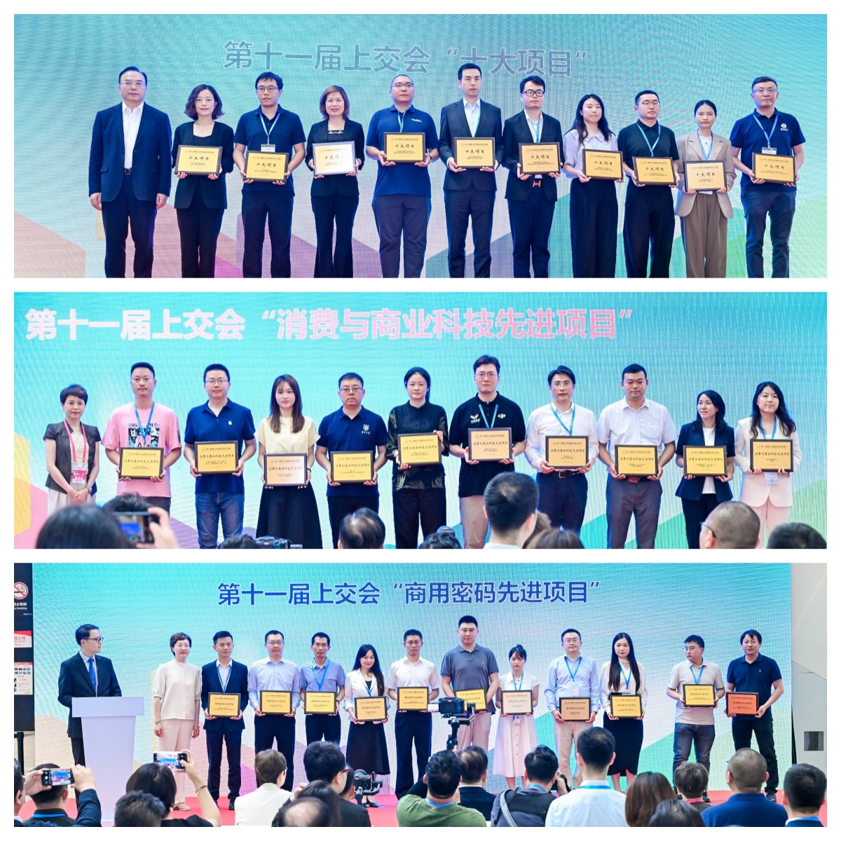 大会最后一天,第十一届上交会参展项目颁奖仪式顺利举办。上海市商务委员会主任朱民、副主任周岚,东浩兰生(集团)有限公司副总裁周瑾等领导和嘉宾出席了仪式,并为获奖项目和单位颁奖。其中紫竹优秀科创企业云拿智能“基于ai aiot智慧零售&物资管理k8凯发天生赢家的解决方案”获得了第十一届上交会“十大项目”奖项、贝芯宠“宠物ai数字健康管理平台”获得了“消费与商业科技先进项目”、循态量子“2024年中国联通上海量子加密otn行业专网建设工程”获得了“商用密码先进项目”。这些项目所获得的荣誉,充分体现了上交会对于紫竹高新区企业科技创新成果的高度认可,也彰显了当下科技在各个领域的深度融合与创新应用的强大潜力,为行业发展树立了新的标杆,引领着未来技术发展的方向。