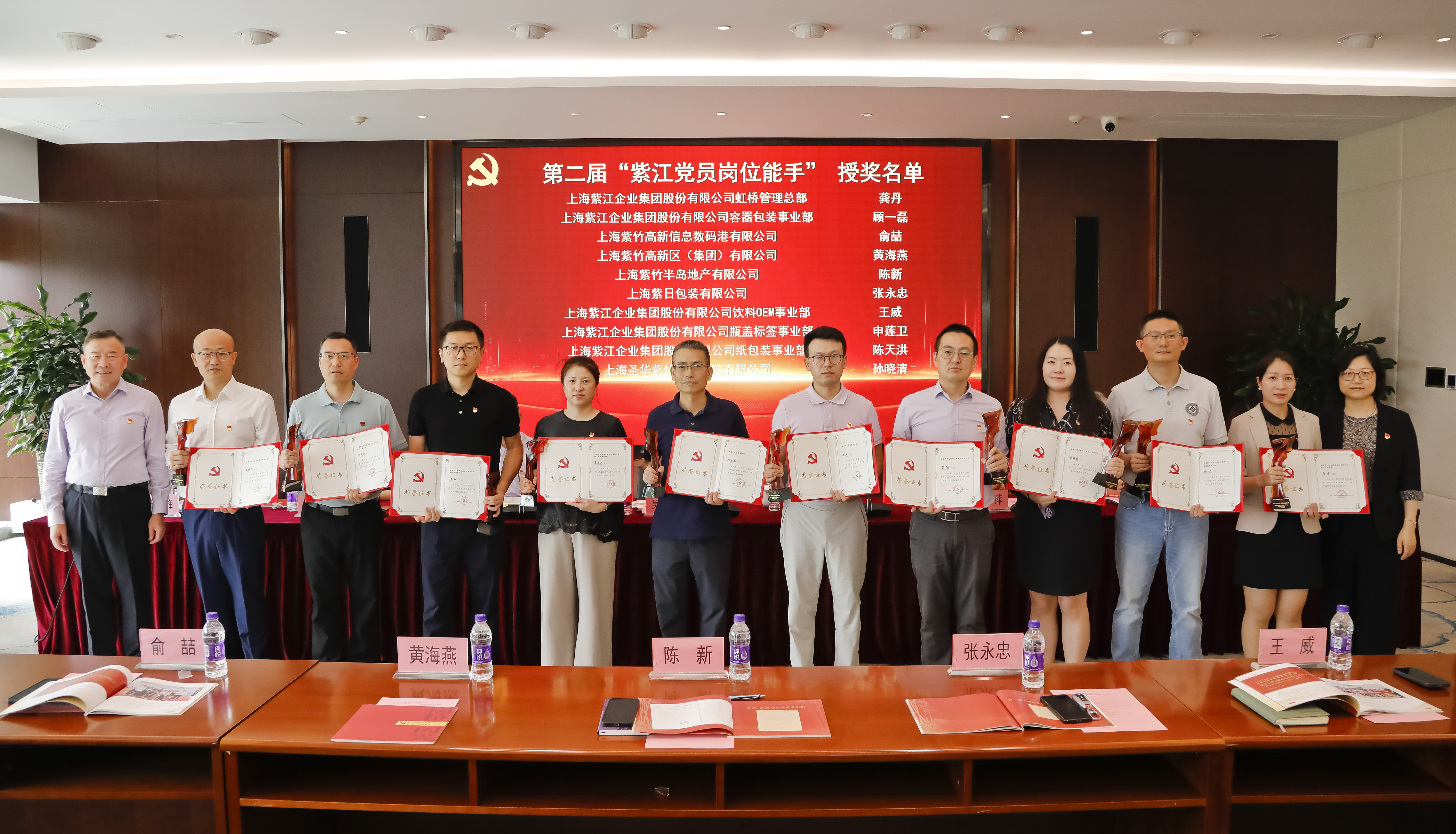 大会命名10名第二届“紫江党员岗位能手”和10名“紫江党员岗位能手”提名奖,表彰了4家闵行区五星党(总)支部获得者和13家2024-2025年度先进党组织。