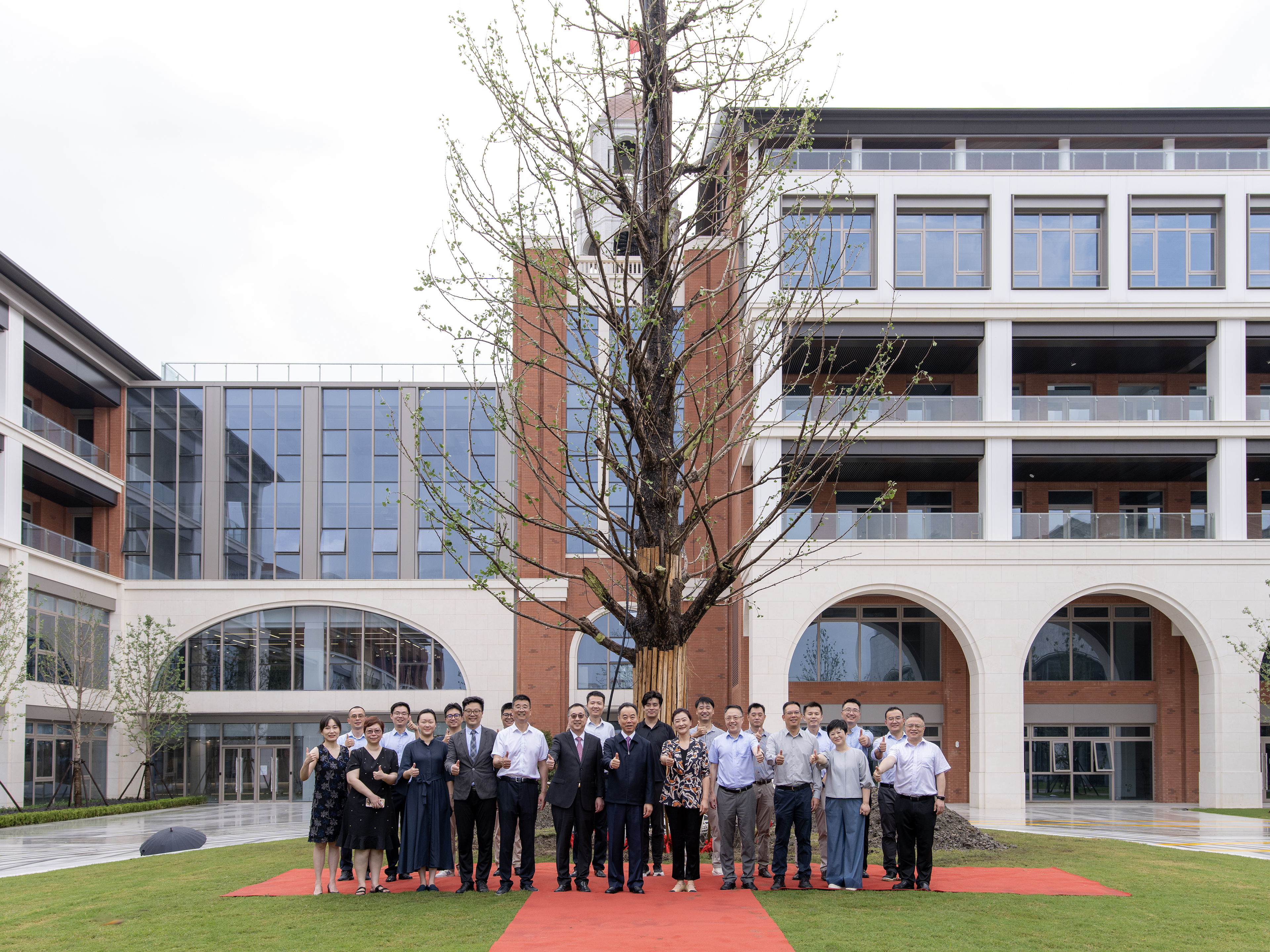 2025年7月18日上午,民办兰香湖基础教育园区迎来学校举办方代表、校方代表和项目参建人员,共同庆祝阶段性成果。紫江集团董事长、圣华紫竹双语学校和高级中学创始人沈雯,紫江集团副董事长郭峰,紫江集团副总裁胡兵、副总裁唐继锋,紫竹高新区集团副总经理陆纬武和圣华紫竹双语学校校长葛顺勇共同为中心广场的银杏树培土,寓意种树育人。