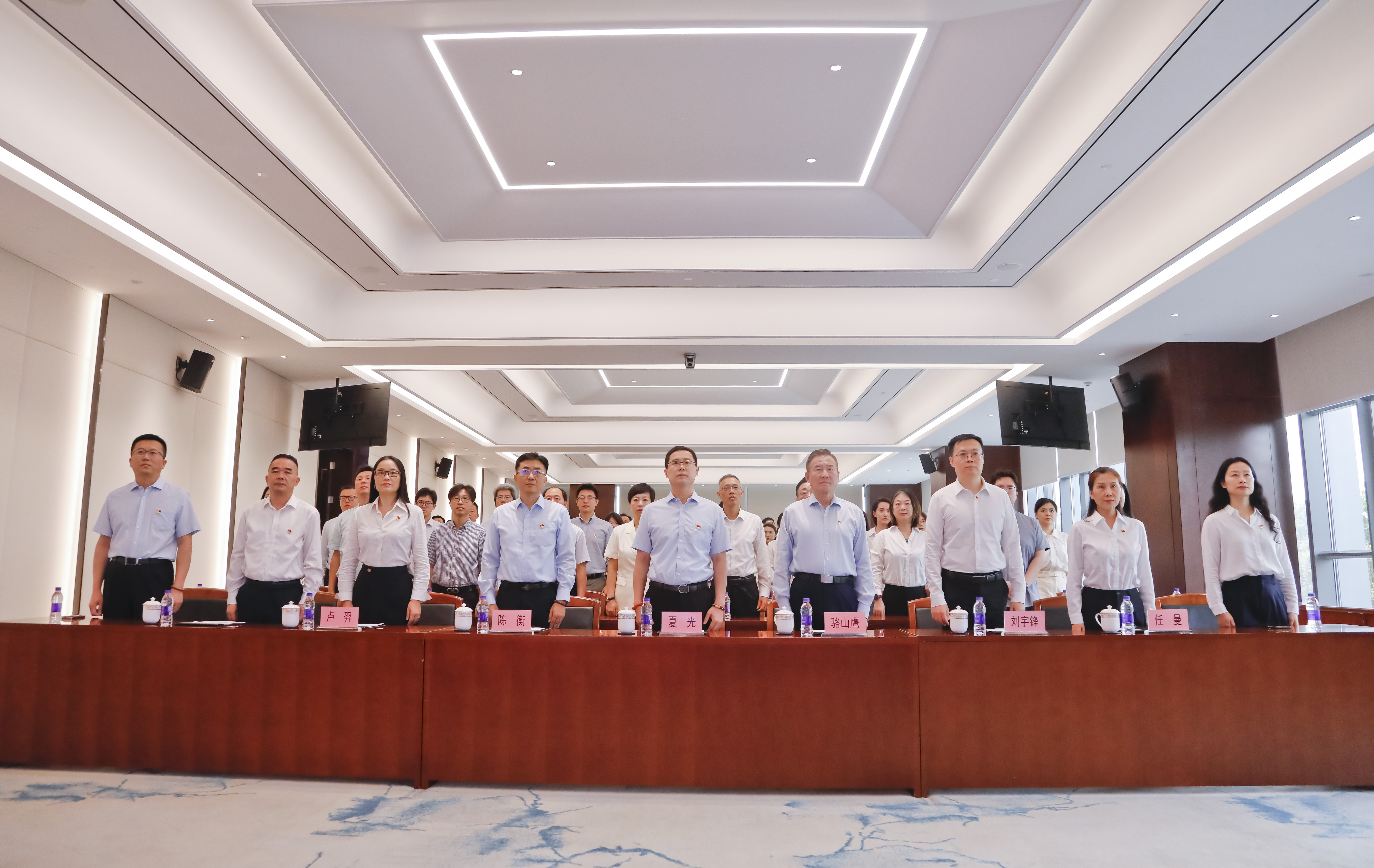 上午9时整,纪念大会准时开始。在庄严肃穆、雄壮恢弘的氛围中,培训中心内全体员工情绪激昂,全体起立齐唱国歌,洋溢着满满的民族自豪感与澎湃的爱国热情。